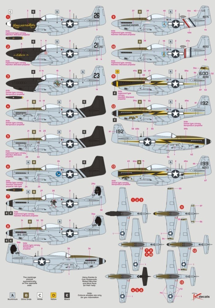 DK DECALS - 1/72 23rd Fighter Group 1944-45, part 2 (13x camo)