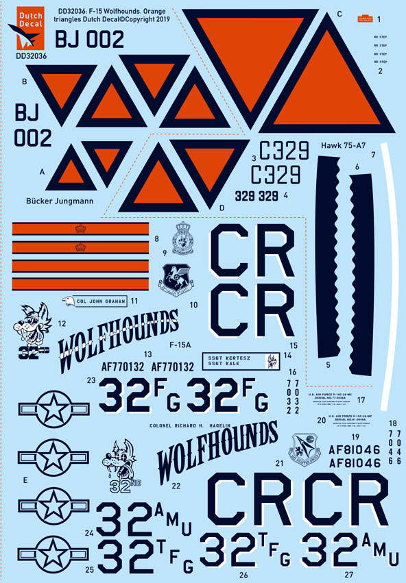 1/32 F-15 Wolfhounds Orange triangles Dutch decal