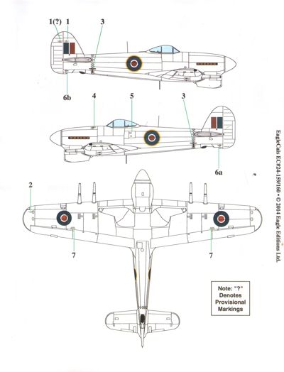 Eagle Cal - 1/24 Hawker Typhoon Mk.IB in 1/24th scale Peace River 5V-G 439 Sqn MN 345 Pilot F/O J.A Brown Pulverizer II I8-P 44p Sqn MP149 Pilot F/O Harry Hardy DFC PR-M 609 Sqn MN 131 Pilot F/L L.E.J.M. Geerts