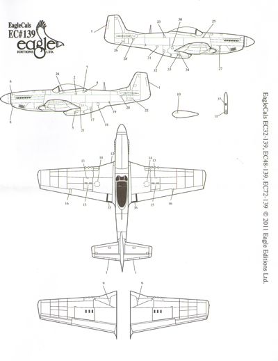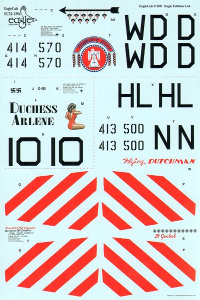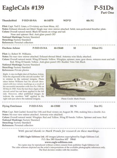 Eagle Cal - 1/32 North-American P-51D Mustang Part 1 (3) 44-14570 WD-D 334th Fs 4th Fg Capt Ted E. Lines 'Thunderbird' red nose, 44-15648/10 Lt Robert W.Williams 'Duchess Arlene' red tail, 44-13500 HL-N 31st Fg Capt Bob Goebel 'Flying Dutchman' red striped tail,