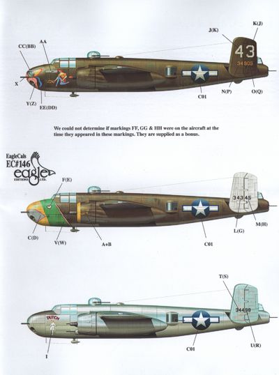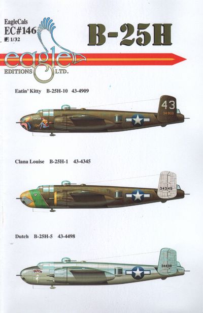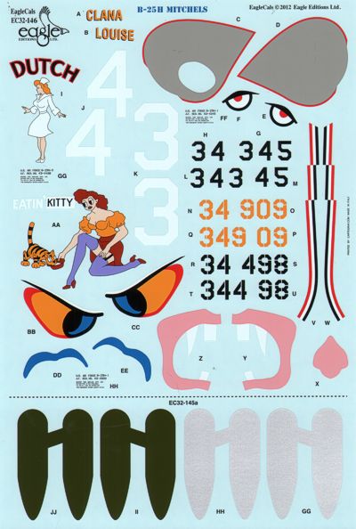Eagle Cal - 1/32 North-American B-25H Mitchell. Nose art for Eatin' Kitty, Charna Louise, Dutch,