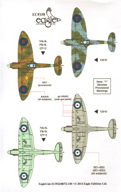 Eagle Cal - 1/32 Supermarine Spitfire Mk.II XRD P7308 71 Sqn Pilot P/O Bill Dunn NK-K P8088 Just Jake 118 Sqn Pilot P/O Alec Lumsden QV-J P7849 Armagh 19 Sqn Pilot F/L Walter Lawson PK-K P7833 Krysia 315 Sqn
