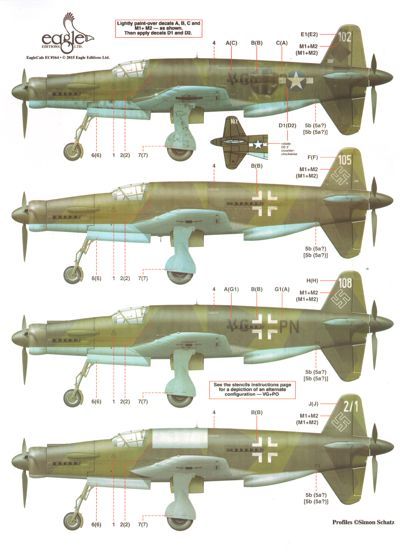 Eagle Cal - 1/48 Dornier Do 335 Do 335A-02, VG+PH, W. Nr. 240102, December 1945 Do 335A-0, W. Nr. 240105, München-Riem, April 1945 Do 335A-0, VG+PN (PO?) W. Nr. 240108, December 1944 Do 335A-1, W. Nr. 240162, Oberpfaffenhofen, April 1945 [Dornier Do 335B-2]