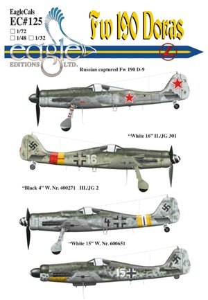 Eagle Cal - 1/72 Focke-Wulf Fw-190D (4) Soviet captured Focke-Wulf Fw-190D-9, White 16 II./JG 301, Black 4 III./JG 2, White 15, All Germany 1945
