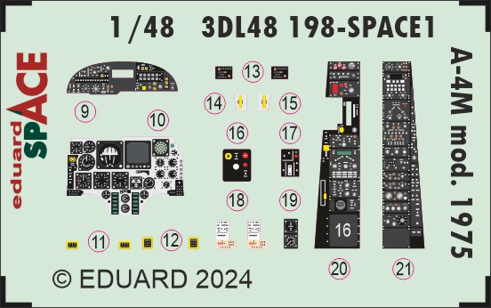 Eduard - 1/48 Douglas A-4M Skyhawk mod. 1975 3D-printed waterslide instrument decals and etched seat-belts (for Magic Factory kits)