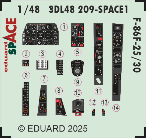 Eduard - 1/48 North-American F-86F-25/30 Space 3D-printed waterslide instrument decals and etched seat-belts (for Airfix kits)