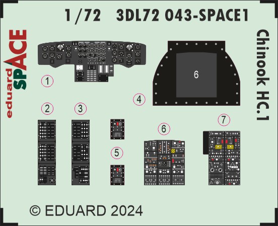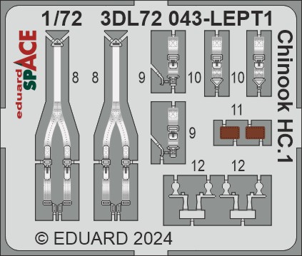 Eduard - 1/72 Boeing Chinook HC.1 3D-printed waterslide instrument decals and etched seat-belts (for Airfix kits)