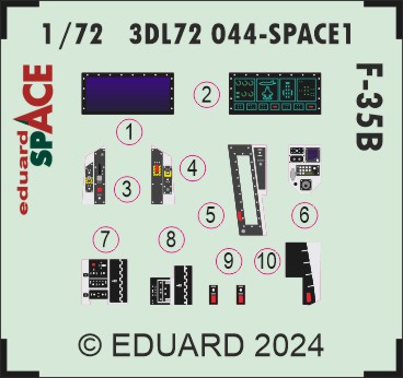 Eduard - 1/72 Lockheed-Martin F-35B Lightning 3D-printed waterslide instrument decals and etched seat-belts (for Tamiya kits)