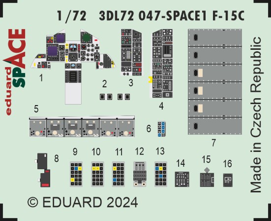 Eduard - 1/72 McDonnell F-15C Eagle 3D-printed waterslide instrument decals and etched seat-belts (for Fine Molds kits)