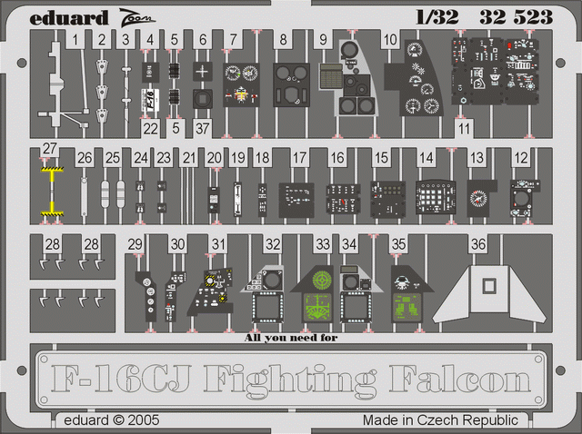 EDUARD - 1/32 Scala AIRCRAFT COLOR PHOTO ETCHED SETS - F-16CJ Fighting Falcon interior - (TAM)