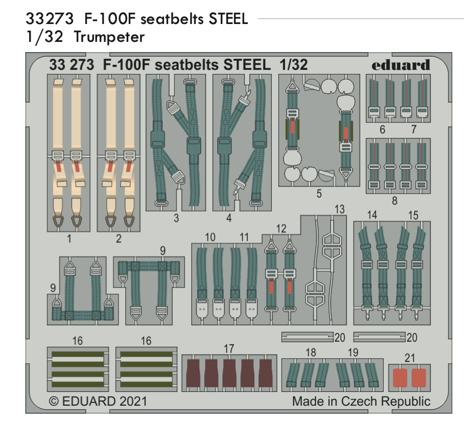 Eduard - 1/32 North-American F-100F Super Sabre seatbelts Steel 1/32 (for Trumpeter kits)