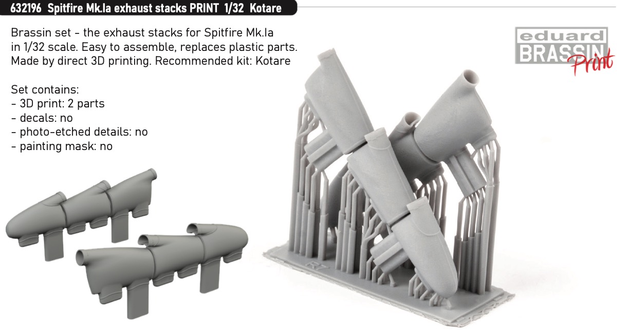EDUARD - Brassin 1/32 Spitfire Mk.Ia exhaust stacks PRINT