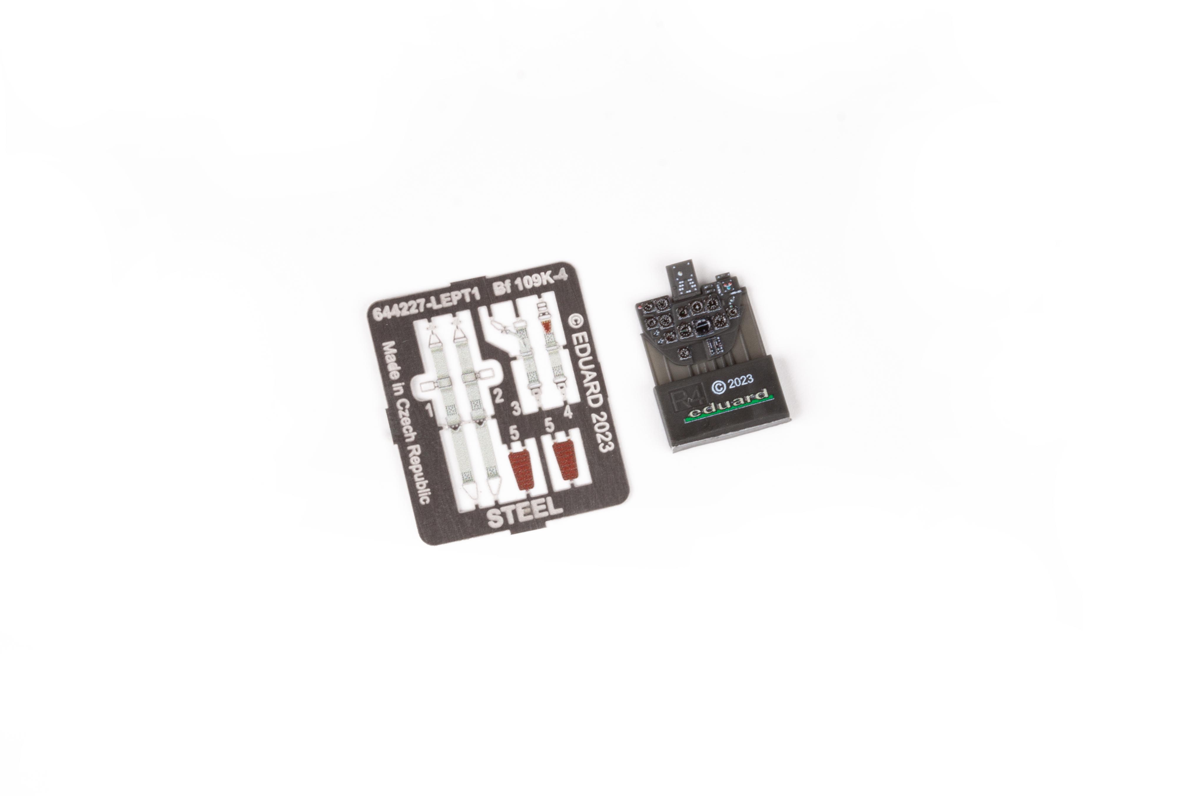 Eduard - 1/48 Messerschmitt Bf-109K-4 LooK (for Eduard) LooK set Brassin pre-painted dashboard and Steel seatbelts