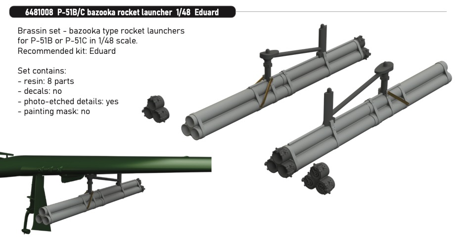 Brassin 1/48 P-51B/C bazooka rocket launcher for Eduard