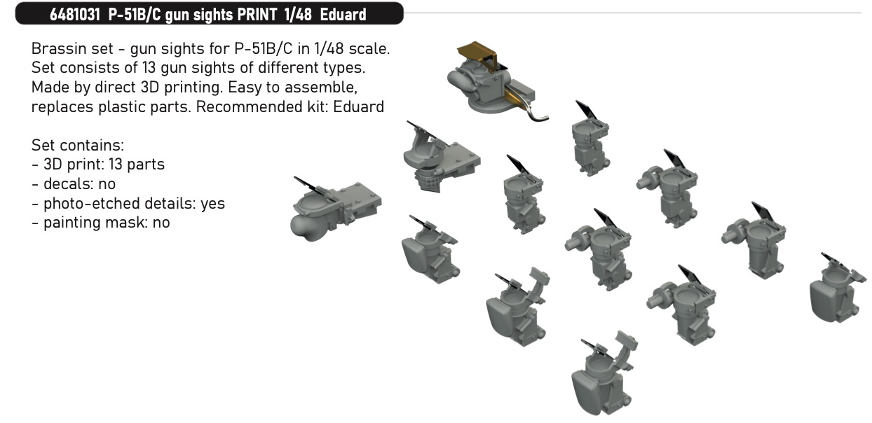 EDUARD - Brassin 1/48 P-51B/C gun sights PRINT for Eduard