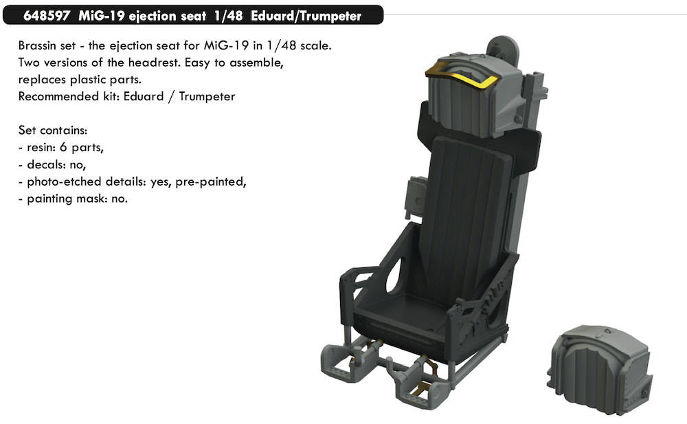 EDUARD - Brassin 1/48 MiG-19 ejection seat (EDU/TRUMP)