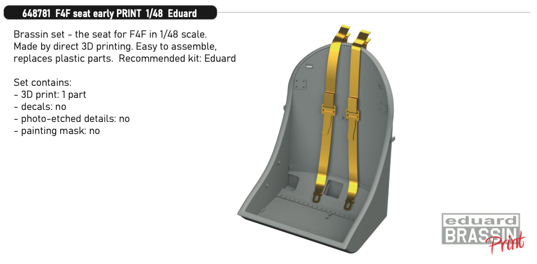 EDUARD - Brassin 1/48 F4F seat early PRINT (EDU)