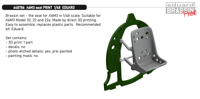 EDUARD - Brassin 1/48 A6M3 seat PRINT (EDU)