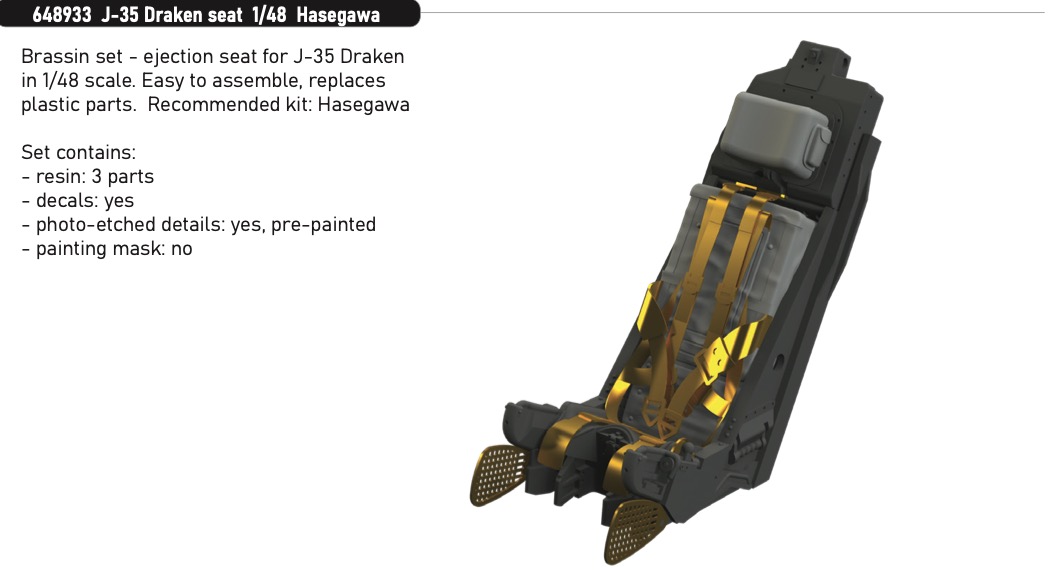 Brassin 1/48 J-35 Draken seat for Hasegawa