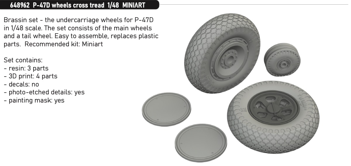EDUARD - Brassin 1/48 P-47D wheels cross tread MINA