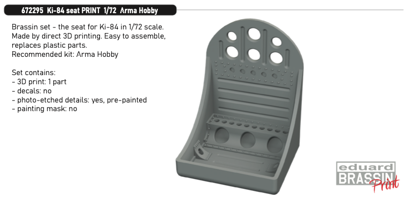 EDUARD - Brassin 1/72 Ki-84 seat PRINT (ARMA H.)