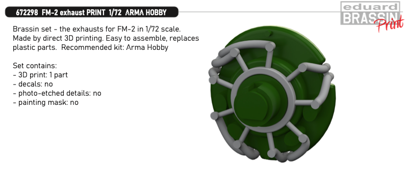 EDUARD - Brassin 1/72 FM-2 exhaust PRINT (ARMA H.)