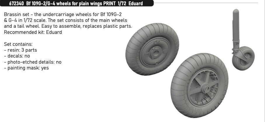 Brassin 1/72 Bf 109G-2/G-4 wheels for plain wings