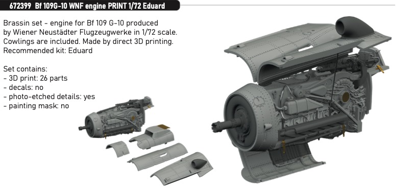 EDUARD - Brassin 1/72 Bf 109G-10 WNF engine PRINT for Eduard