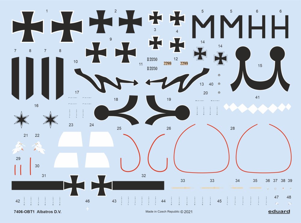 kit of German WWI fighter plane Albatros D.V in 1/72 scale. plastic parts: Eduard No. of decal options: 4 decals: Eduard Pe parts: no painting mask: no resin parts: no