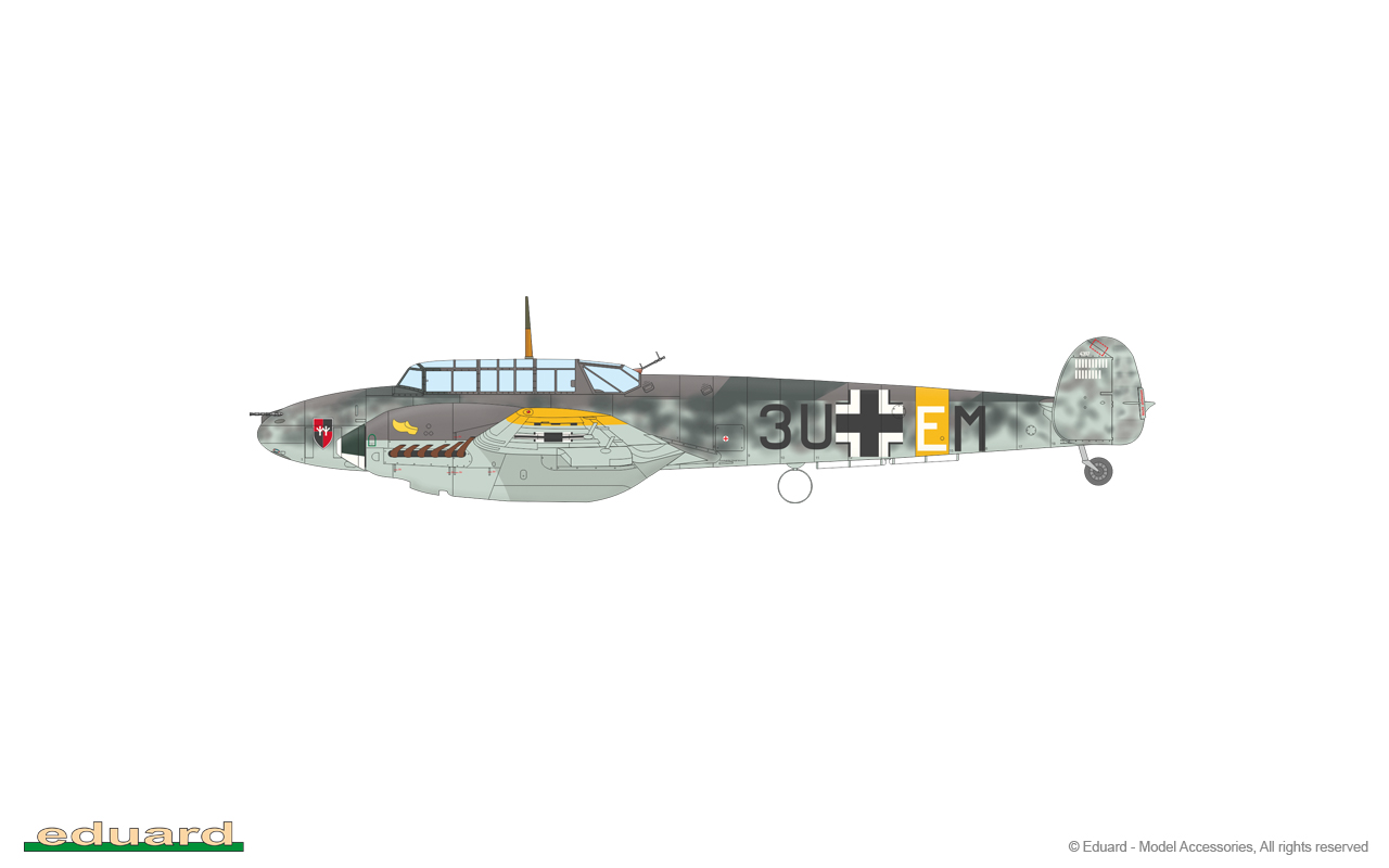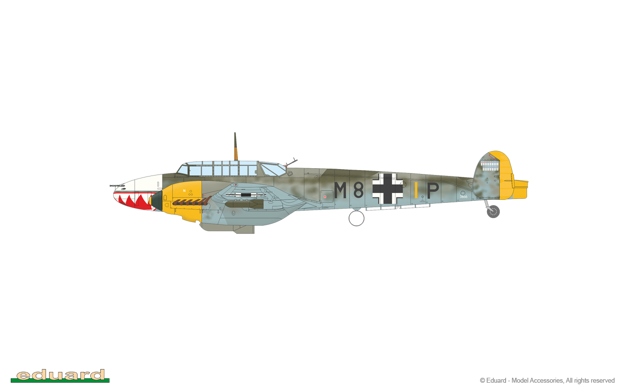 Eduard - 1/72 Messerschmitt Bf-110EWeekend edition kit of German WWII twin-engine heavy fighter aircraft Messerschmitt Bf 110E in 1/72 scale. plastic parts: Eduard marking options: 4 decals: Eduard Pe parts: no painting mask: no resin parts: no (first delivered 27-08-22)