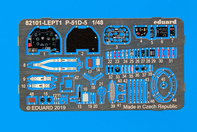 Eduard - North-American P-51D-5 Mustang ProfiPACK edition kit of US WWII fighter aircraft P-51D-5 in 1/48 scale. The kit is focused on aircraft without the dorsal fin assembly. plastic parts: Eduard