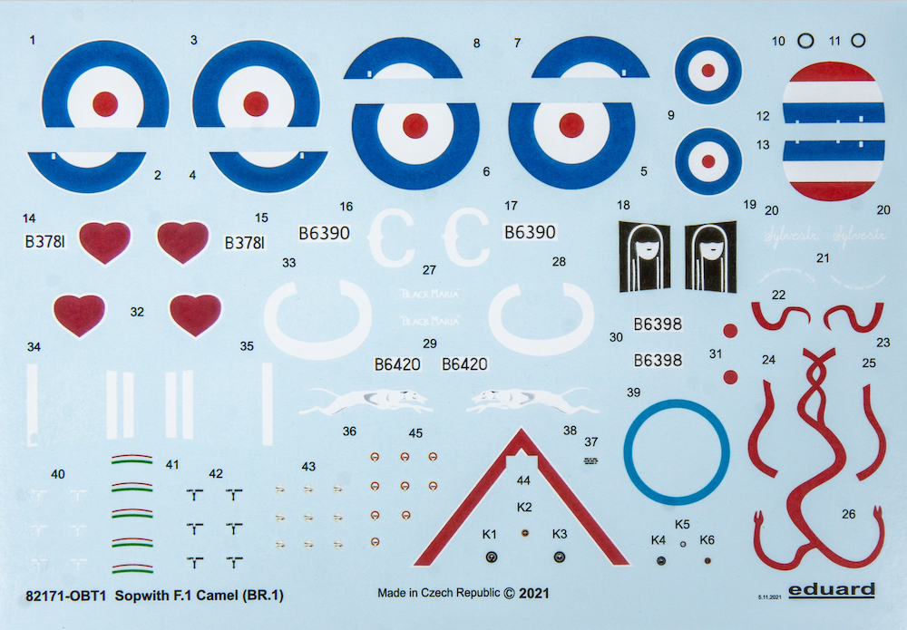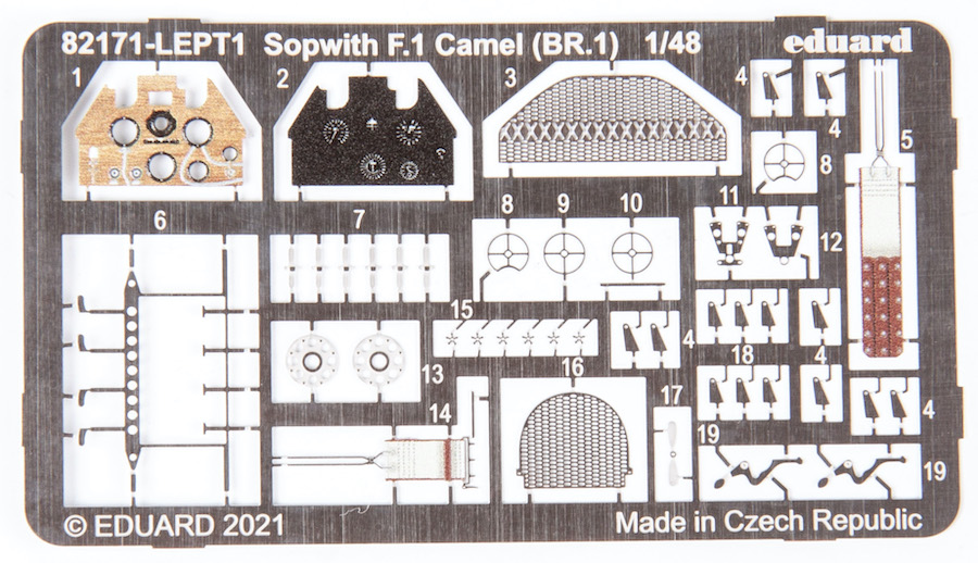 Eduard - 1/48 Sopwith F.1 Camel (BR.1) Profipack edition kit of British WWI fighter aircraft Sopwith F.1 Camel with Bentley BR.1 rotary engine in 1/48 scale. plastic parts:Eduard marking options: 5 decals: Eduard Pe parts: yes, pre-painted painting mask: yes resin parts: