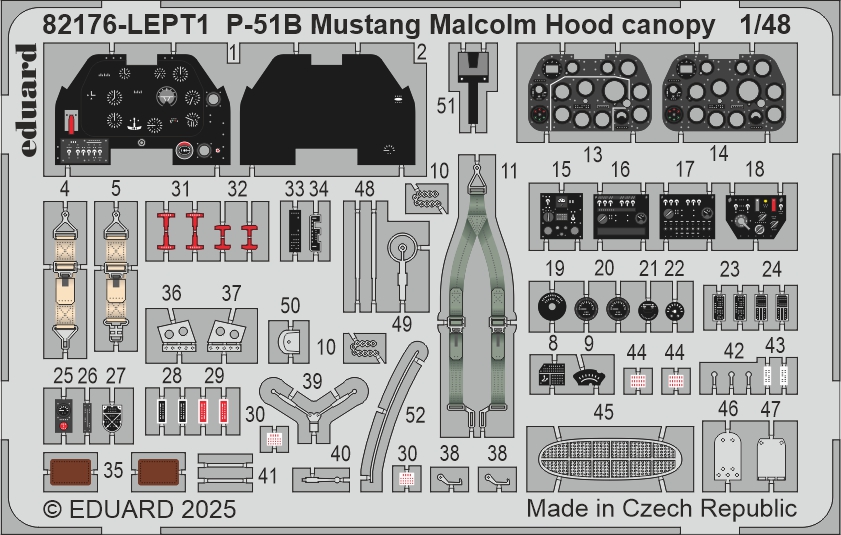 Eduard - 1/48 North-American P-51B Mustang with the Malcolm Hood canopy EDUARD-PROFIPACK The ProfiPACK edition kit of US WWII fighter aircraft P-51B Mustang in 1/48 scale. The kit offers 6 markings of Mustangs with Malcolm Hood canopy. plastic parts: Eduard- marking options: 6- decals: Eduard- Pe parts: yes, pre-painted- painting mask: yes- resin parts: no