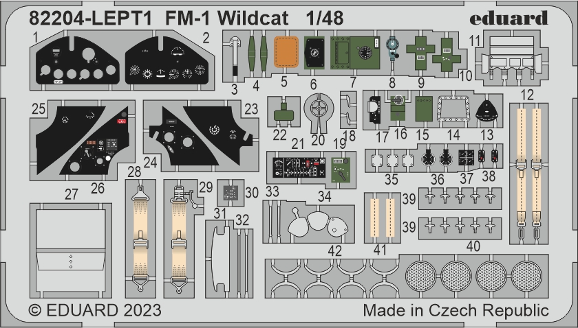 Eduard - 1/48 Grumman FM-1 Wildcat Fleet Air Arm x 2 and US Navy x 4. New tool kit! First edition. The ProfiPACK kit of US WWII aircraft carrier-based fighter FM-1 Wildcat in 1/48 scale.Kit presents FM-1 Wildcats from US Navy combat over the Pacific and the Atlantic, and also from the British FAA. Plastic parts: Eduard, marking options:6, decals: Eduard,PE parts, painting masks: yes, resin parts: no