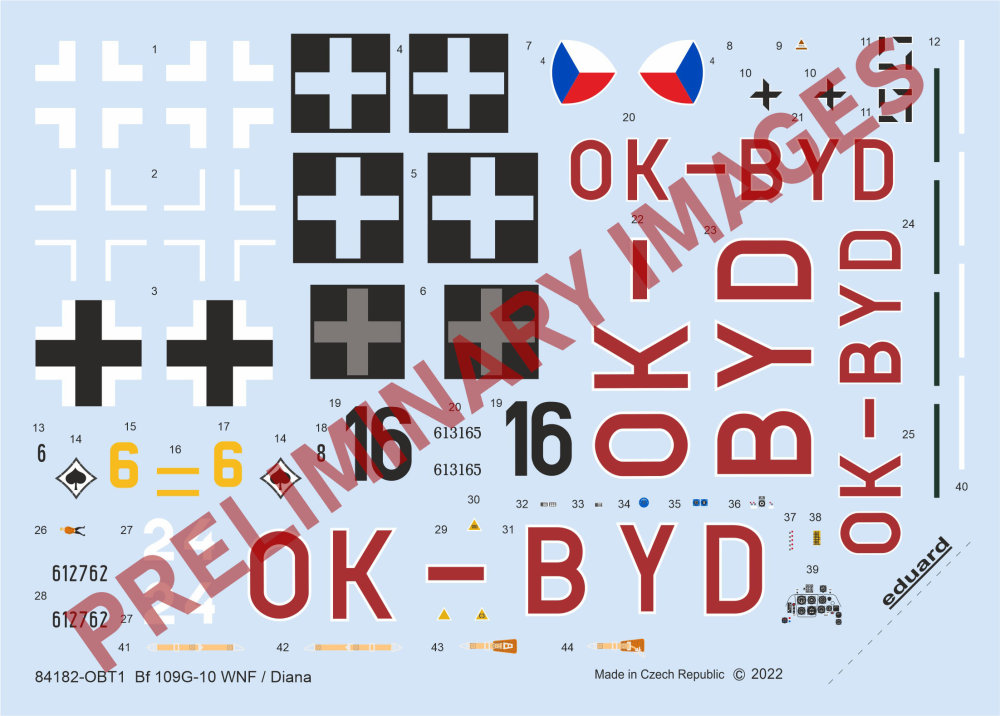 Weekend edition kit of German WWII fighter aircraft Bf 109G-10 in 1/48 scale. The kit is focused on 109s produced by Wiener Neustadter Flugzeugwerke / Diana. plastic parts: Eduard, decal: 4,PE parts: no, mask: no, resin parts: no