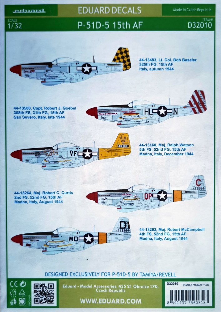 Eduard - North-American P-51D-5 Mustang 15th Af 1/32 (for Revell and Tamiya kits)