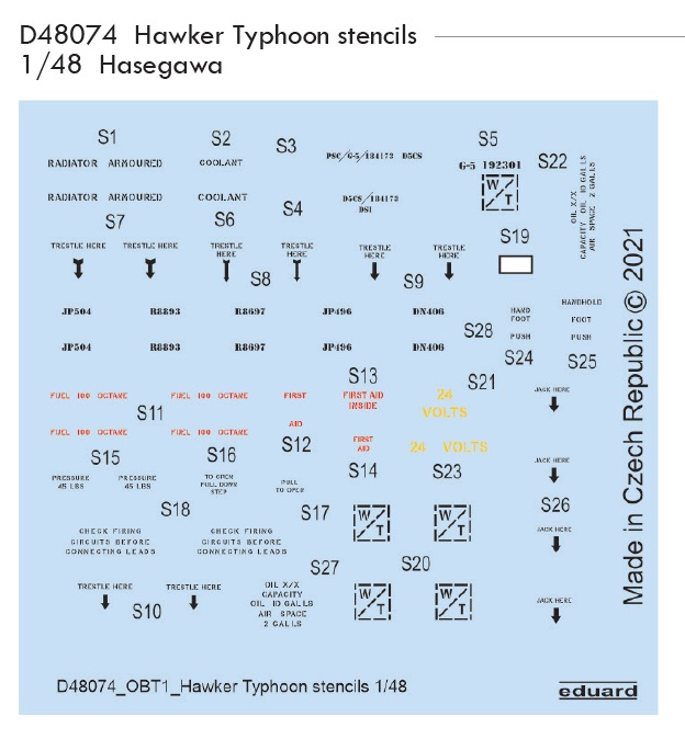 EDUARD - 1/48 Decals Hawker Typhoon stencils (HAS)
