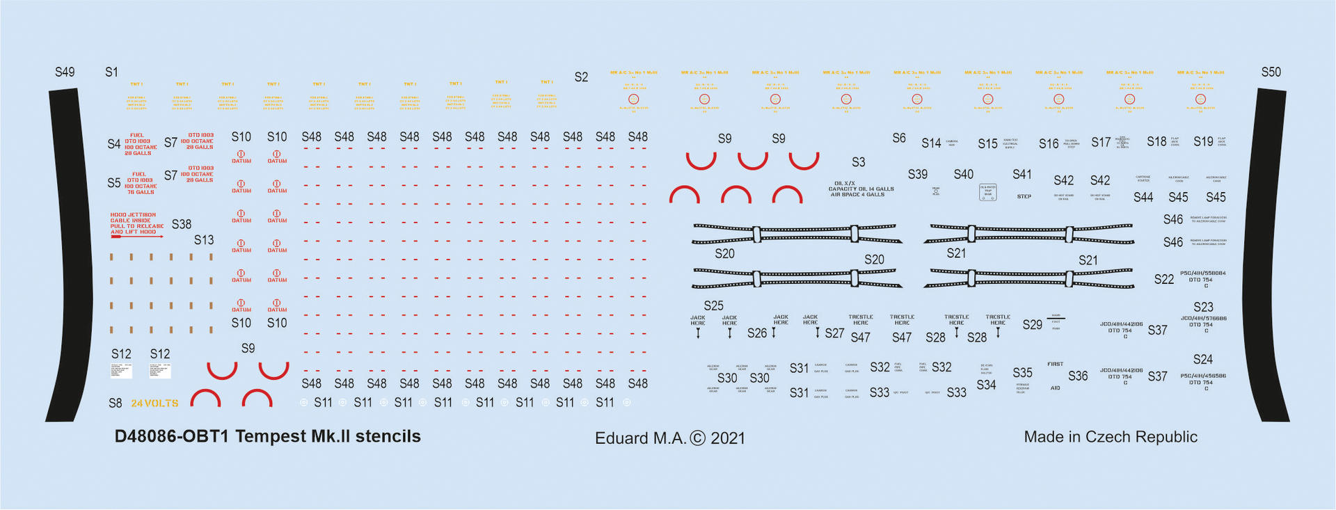 Eduard - 1/48 Hawker Tempest Mk.II stencils (for Eduard and Special Hobby kits)