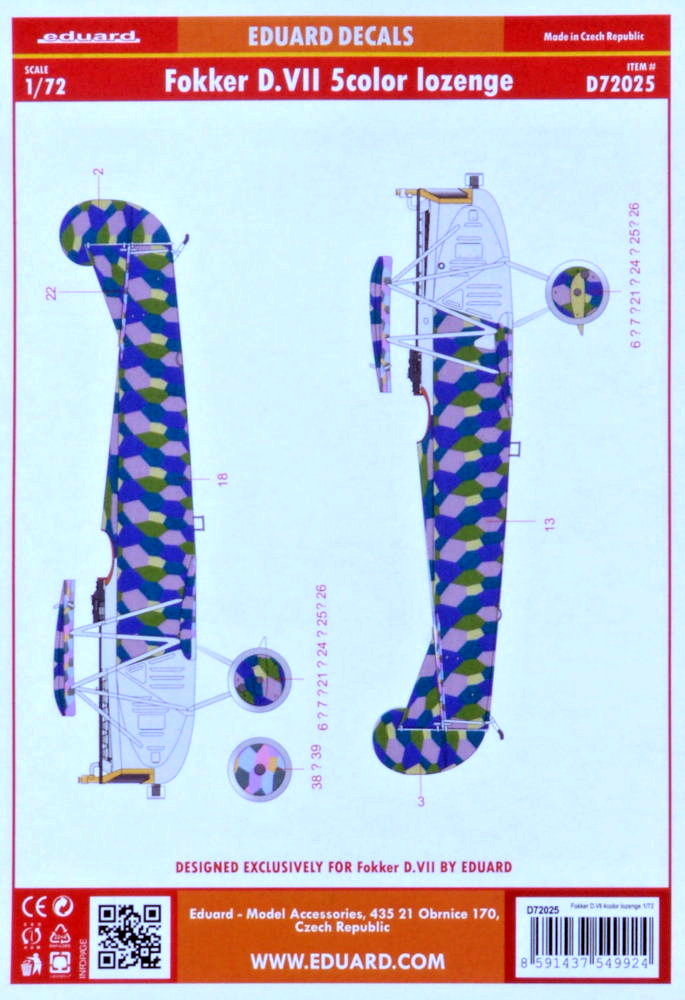 EDUARD - Decals 1/72 Fokker D.VII 5 color lozenge (EDU)
