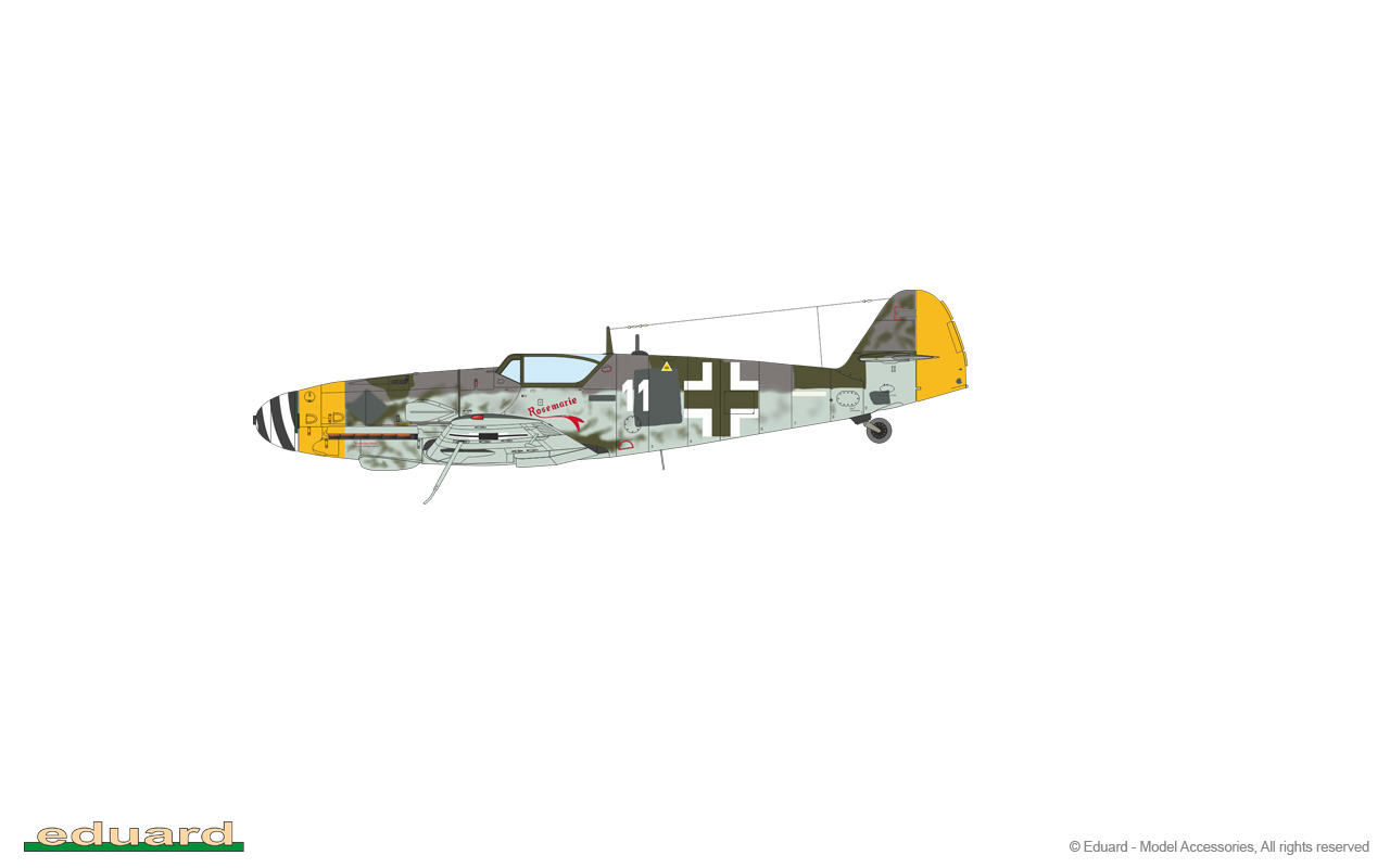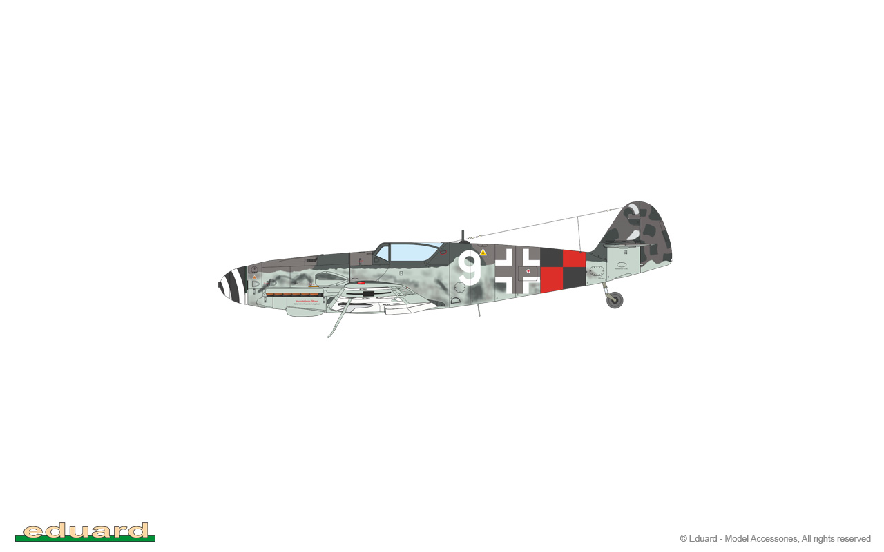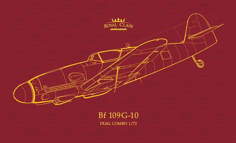 Eduard - 1/72 Messerschmitt Bf-109G-10 & Bf-109G-14/AS Dual COMBO. The Royal Class edition kit of the German fighter aircraft Bf 109G-10 in 1/72 scale. The box contains plastic sprues for two complete kits. plastic parts: Eduard, marking: 10, decals, Pe parts, painting mask, resin parts: (exhausts, undercarriage wheels-two types), wheel wells plugs (Omask)