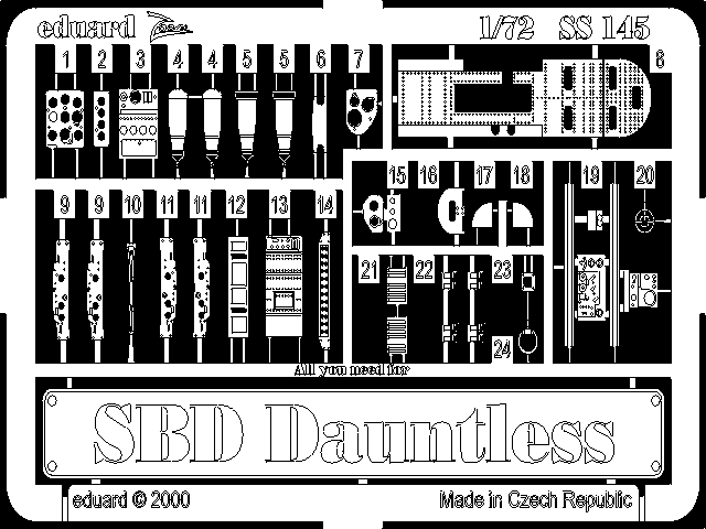 Eduard - 1/72 Douglas Sbd Dauntless (for Hasegawa kits) Includes about 20 of the more important and prominent parts for detailing the aircraft. Most sets are also available as part of a double set for the modeller who wants even more detail. Please see the picture for the double set part number.