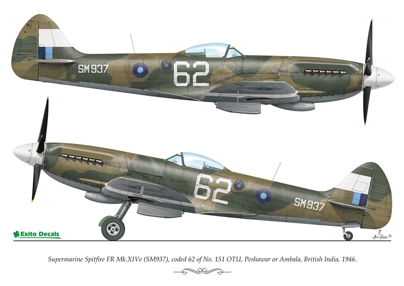 - Spitfire Fr Mk.XIVe (SM937), coded 62 of No. 151 OTU, Peshawar or Ambala, British India, 1946.