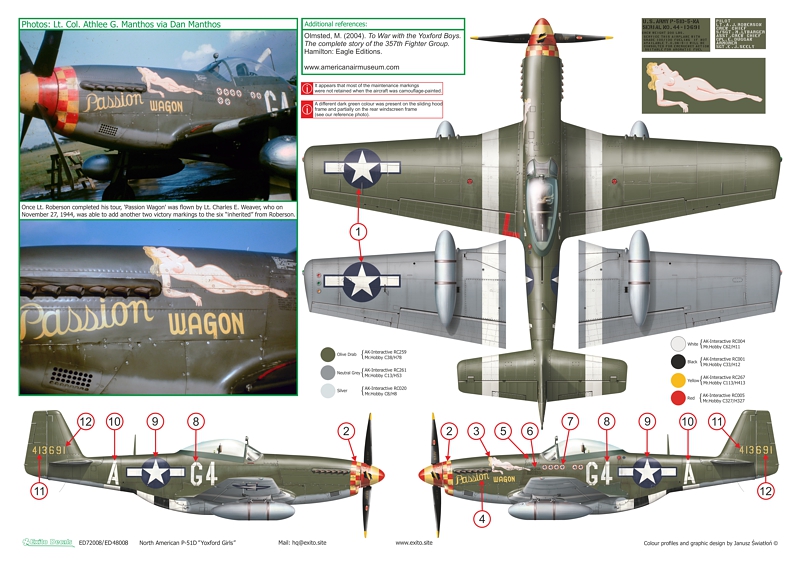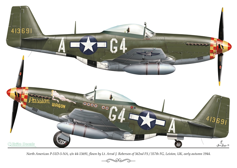 - P-51D-5-NA, s/n 44-13691, flown by Lt. Arval J. Roberson of 362nd Fs / 357th FG, Leiston, UK, early autumn 1944.
