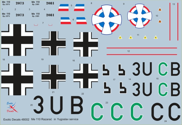 Exotic Decals - 1/48 Me 110 Razarac Me 110 in Yugoslav service