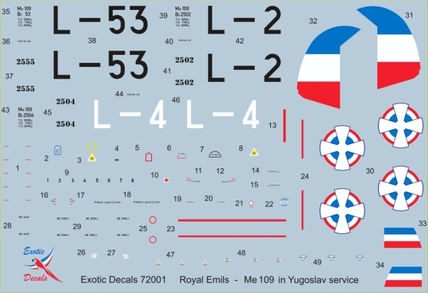 Exotic Decals - 1/72 Royal Emils Messerschmitt Bf-109 in Yugoslav service