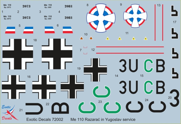 Exotic Decals - 1/72 Me 110 Razarac Me 110 in Yugoslav service