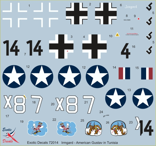 Exotic Decals - 1/72 Irmgard American Gustav in Tunisia captured Messerschmitt Bf-109G-2 W.Nr.10605