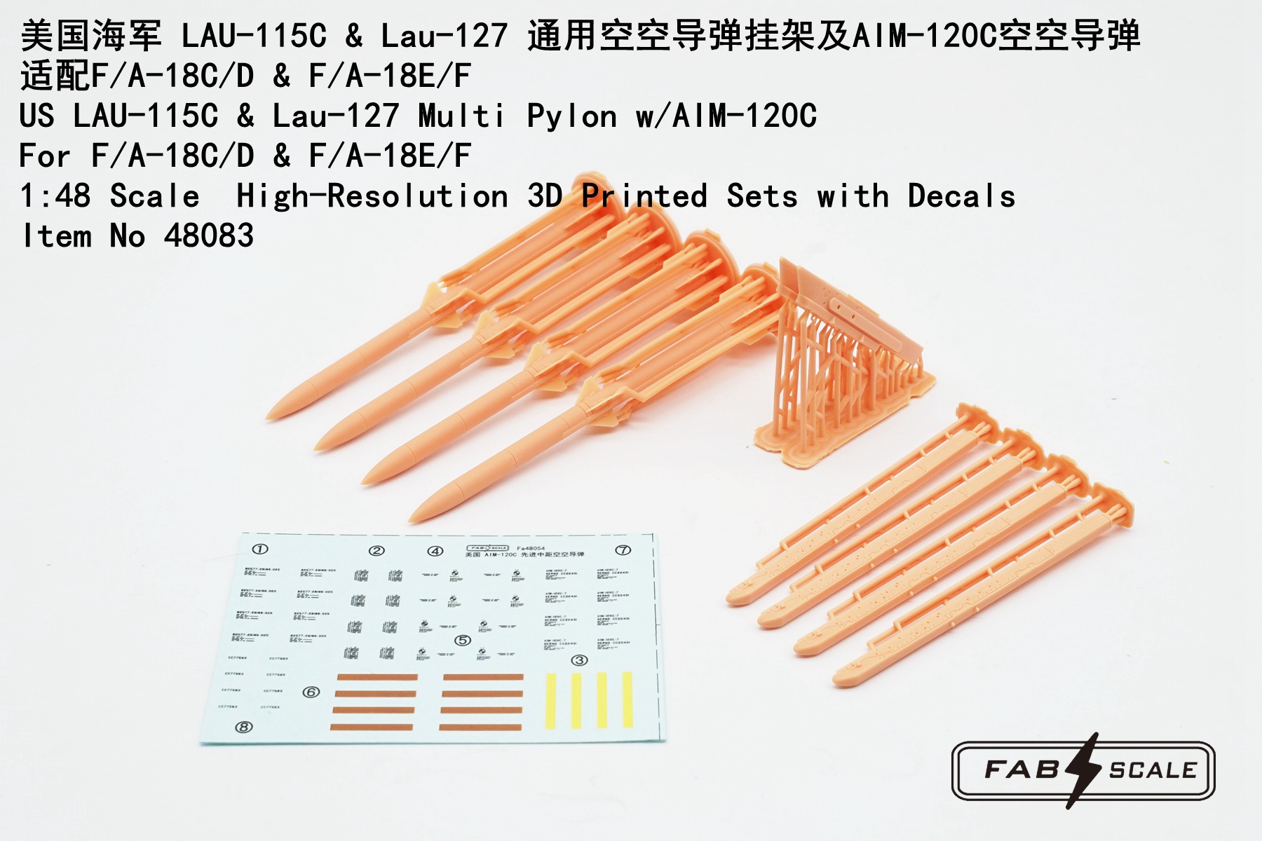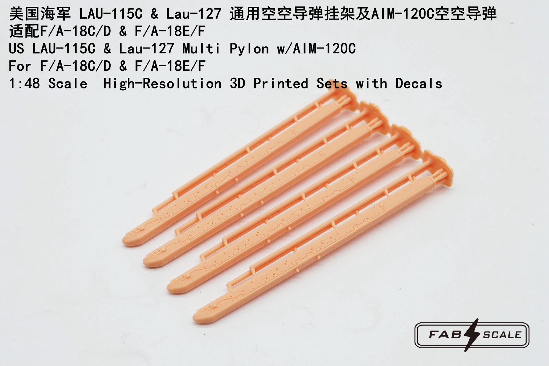 FabScale Studio - 1/48 LAU-115C & LAU-127 multi pylon with AIM-120C for Lockheed-Martin F/A-18C and F/A-18D and Boeing F/A-18E and F/A-18F Super Hornet for Hasegawa