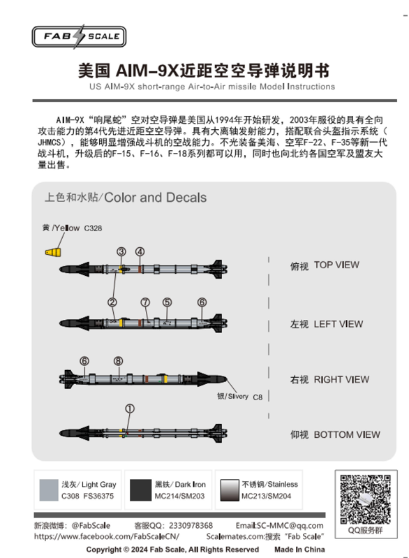 FabScale Studio - 1/72 US AIM-9X Siderwinder 4 pieces