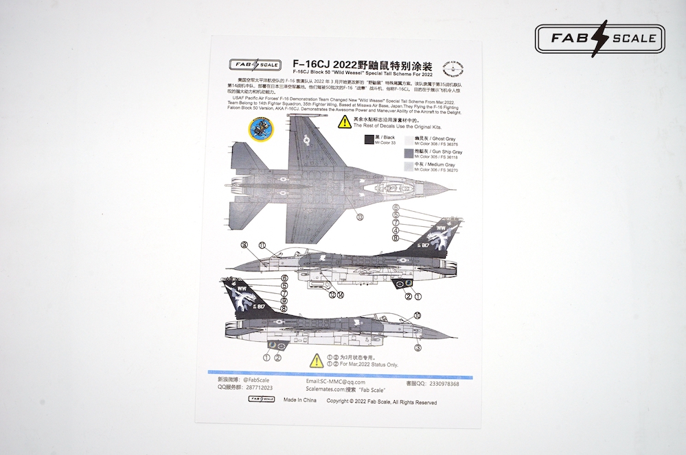 FabScale Studio - 1/72 Lockheed-Martin F-16CJ Wild Weasel Special Tail Scheme for 2022 Pacific Demo Team